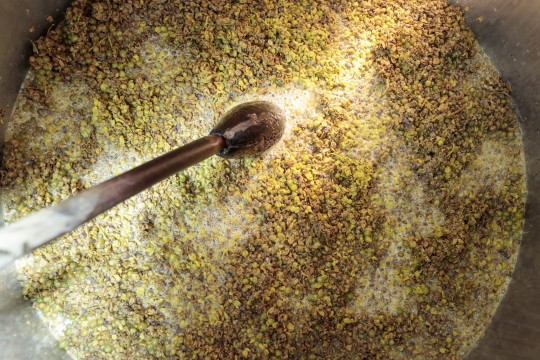 Für unseren Riesling Orange führen wir eine 2-3-wöchige Maischegärung mit 25 % ganzen Trauben durch. Die restlichen Trauben stampfen wir vor der Gärung mit den Füßen. Eine spontane Gärung folgt. Nach der Gärung reift der Orangewein für 3Jahre auf der Feinhefe im Tonneaux. Danach wird er unfiltriert abgefüllt.